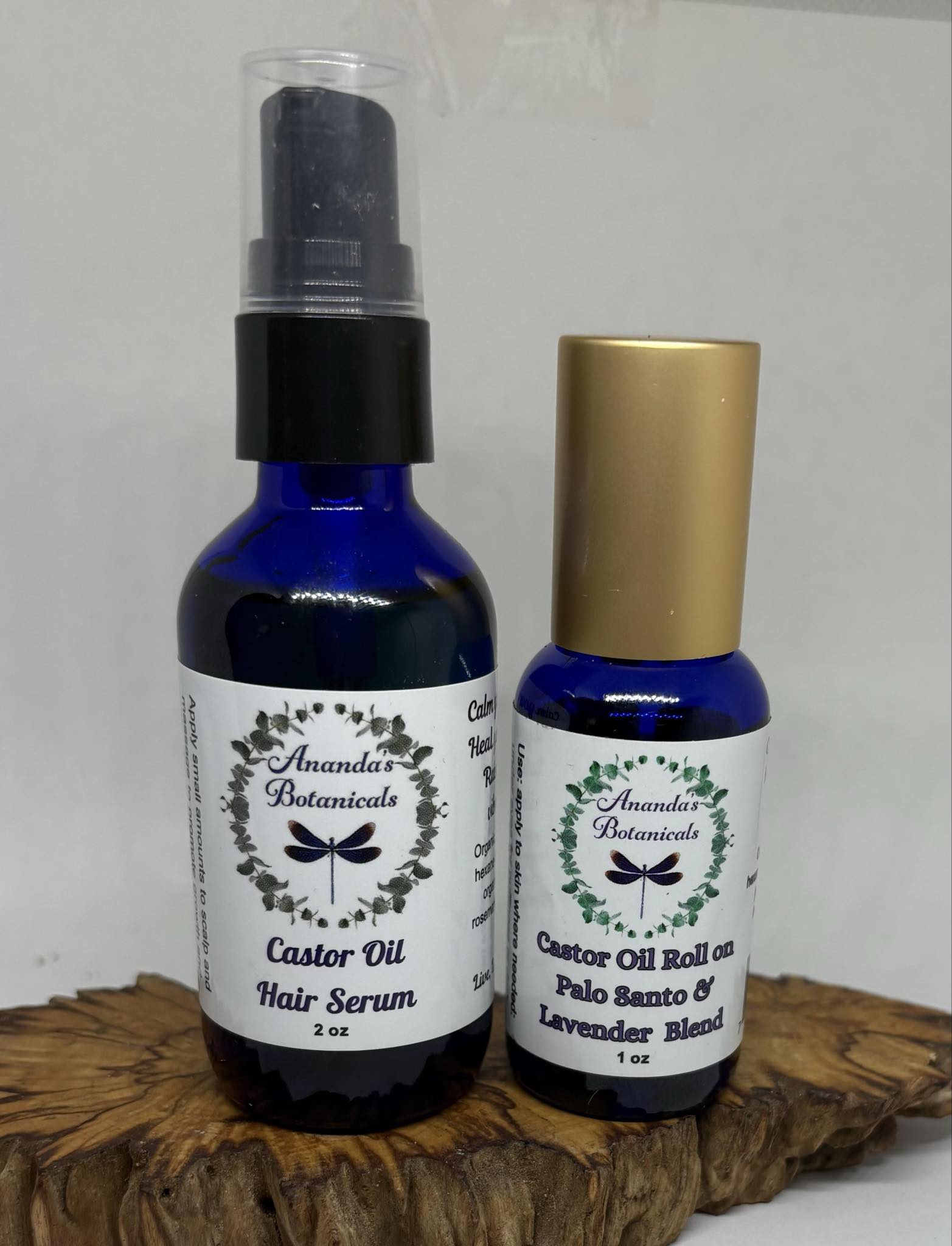 Get both our 1 oz Castor Oil with Palo santo and Lavender roll on and our 2 oz Castor Oil Hair serum and save.